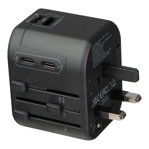 - Adaptateur de voyage en plastique avec 2x ports USB et 2x ports USB-C