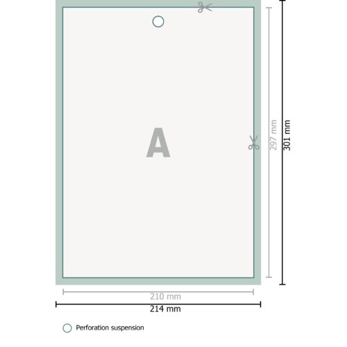 - Suspension : perforation en haut au centre (Ø 5 mm)